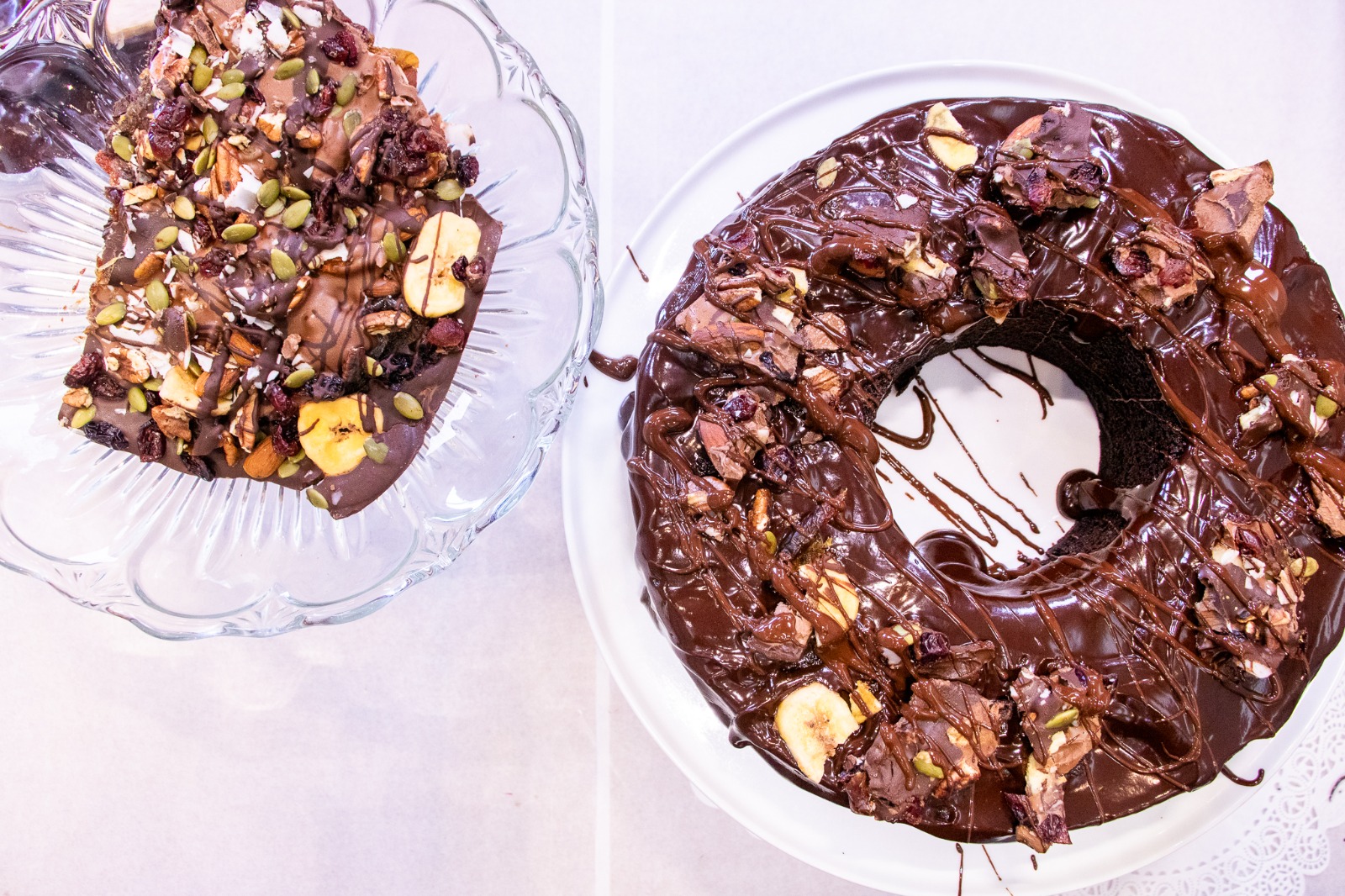Spoon over the ganache and decorate with berries or chocolate curls.