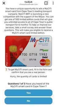 MyCiTi bus commuters are being cautioned against a social media scam offering six months of free travel, promoted through a page called “Cape Town public transport card”.