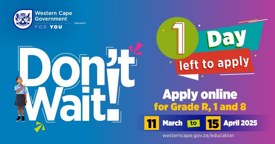 It’s the final call for parents who have not yet completed their 2026 school applications, as the on-time window for Grades R, 1 or 8 applications closes on Tuesday, 15 April 2025.