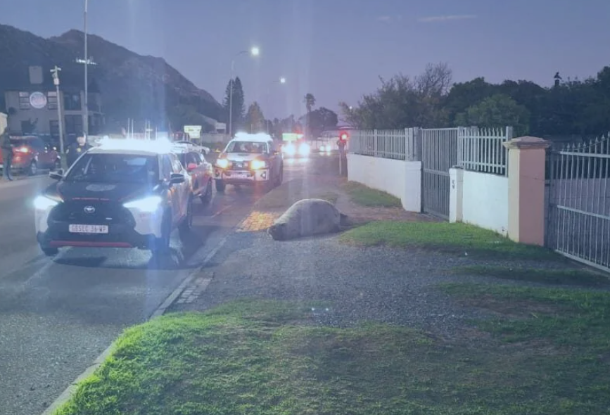 Residents of Gordon’s Bay were in for a surprise early Tuesday morning when a Southern elephant seal was spotted lounging near Sir Lowry’s Pass Road—almost a full kilometre inland from the coast.