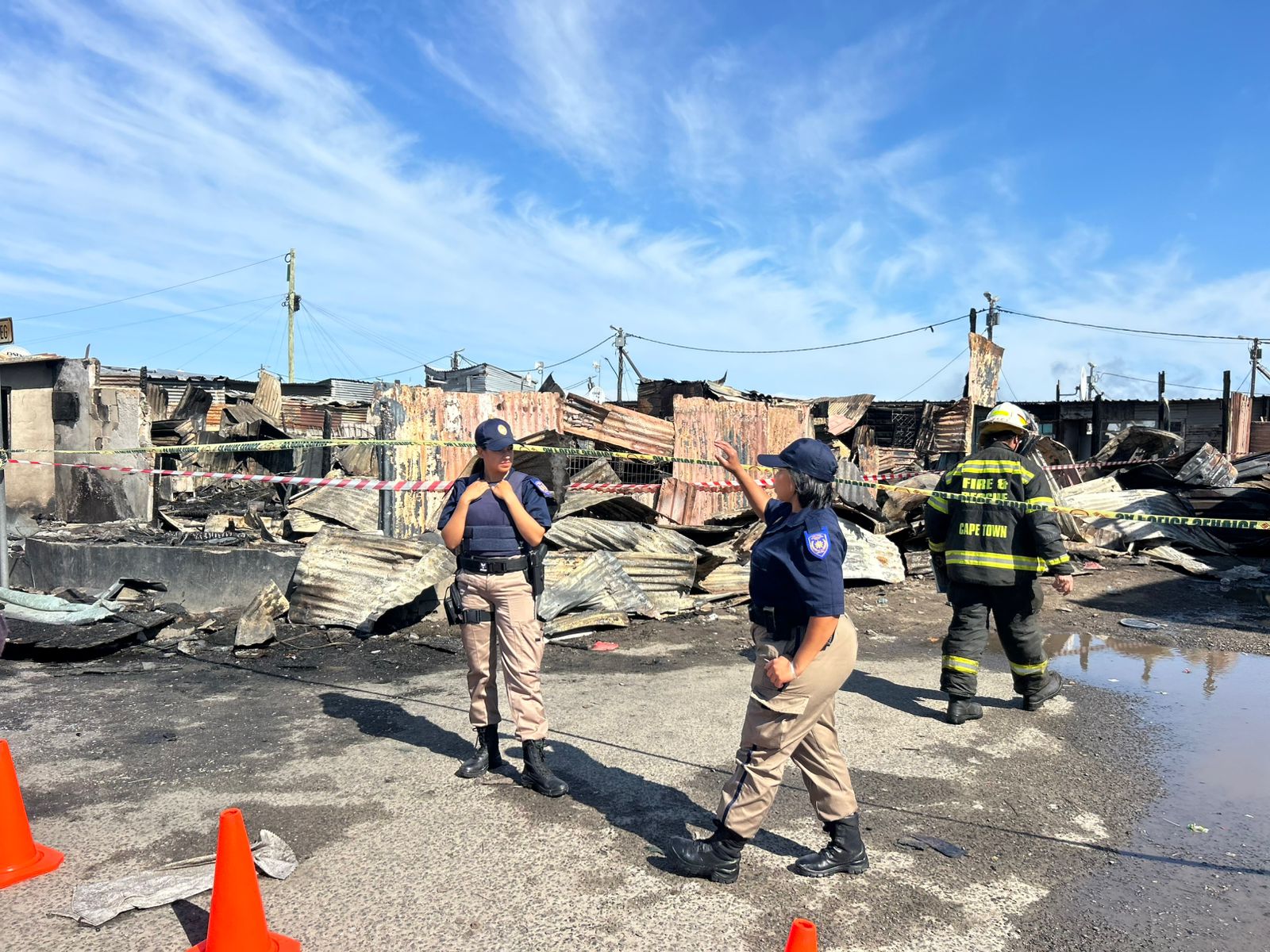 Initial estimates indicate that the fire destroyed one formal structure and about 20 informal dwellings before it was contained. Crews remained on site throughout the morning to extinguish remaining hotspots.