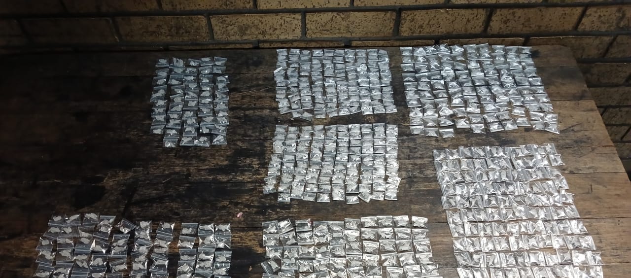“Upon arrival, they found a 9mm pistol without a serial number, eight rounds of ammunition, and 648 sachets of crystal meth with an estimated street value of R28 420.00.”