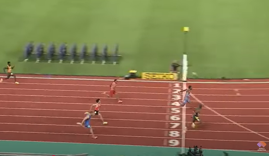 The race began with 19-year-old Walaza, a double sprint champion at last year’s World U20 Championships in Lima, who faced tough competition from USA’s Courtney Lindsey, Canada’s Aaron Brown, and Japan’s Naoki Okami.