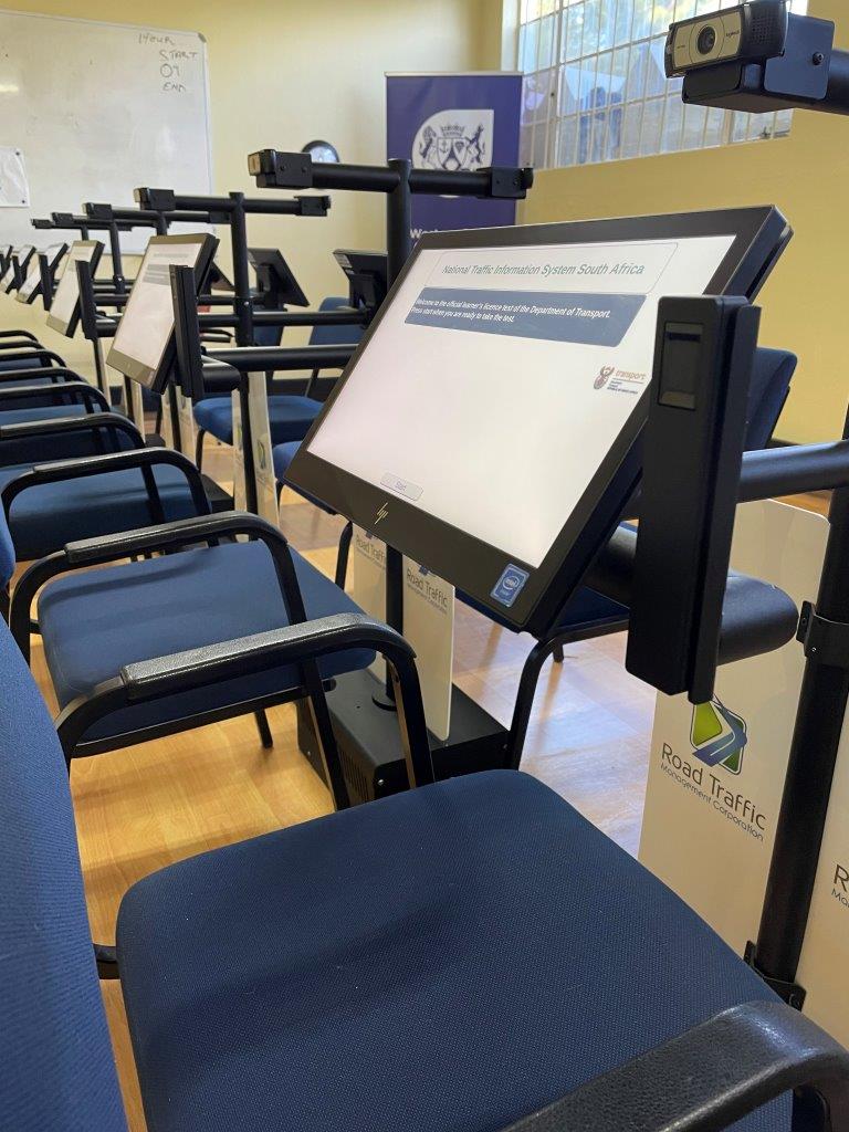 The system includes fingerprint-secured testing terminals connected to the National Traffic Information System (NaTIS), randomised question generation, and real-time result processing to ensure accuracy and reduce fraud.
